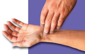 Use a finger to gently tap the center of your wrist (just under the palm).